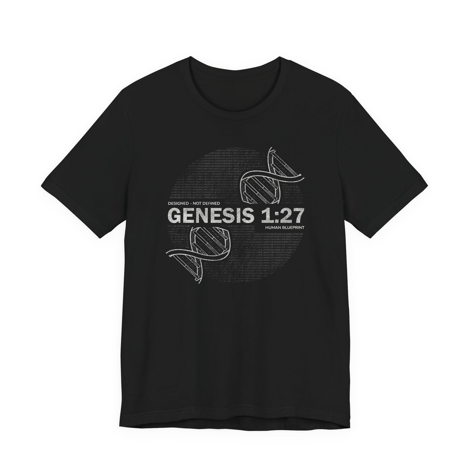 世界はあなたを定義しようとしますが、創造主はすでにあなたを設計しました。創世記1章27節にインスピレーションを得たこの作品は、DNAと人間の姿を融合させ、生命の究極の設計者を明らかにします。あなたのアイデンティティは、意見ではなく創造に根ざしています。